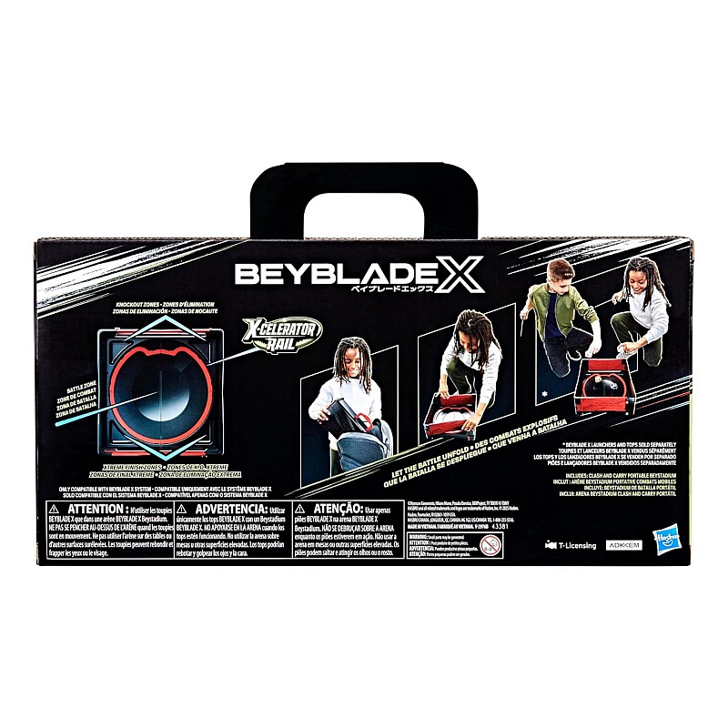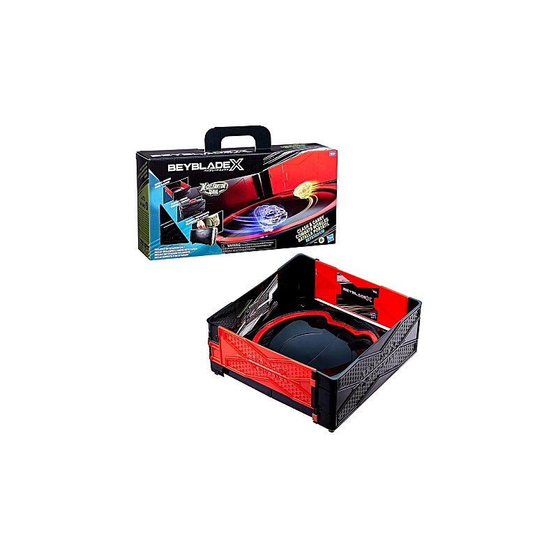 Bring the battle wherever you go with Beyblade X Clash and Carry Beystadium, this portable stadium opens in a fighting arena and folds closed for light transport and storage.