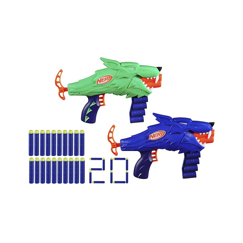 NERF WILD WOLFPACK includes 2 Nerf Wild blastre with ferocious wolf to stimulate imaginative game and amusement with arrows.