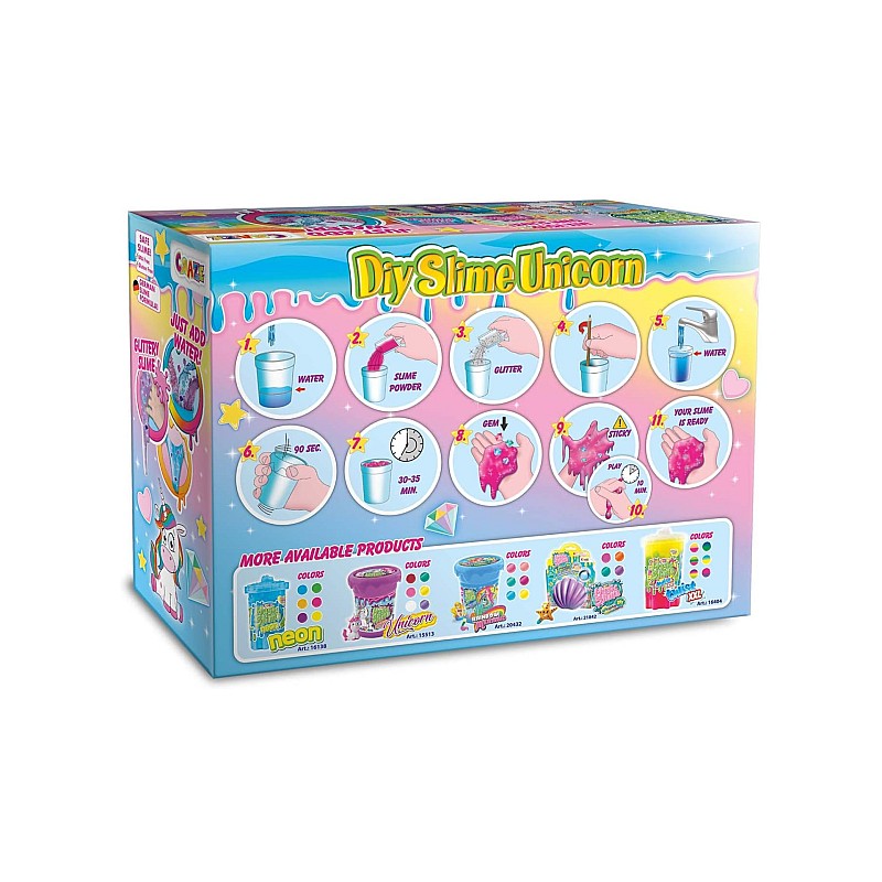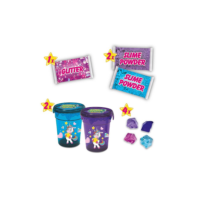 The MAGIC SLIME DIY UNICORN set contains everything you need to mix 2 boxes of MAGIC SLIME with special effects.