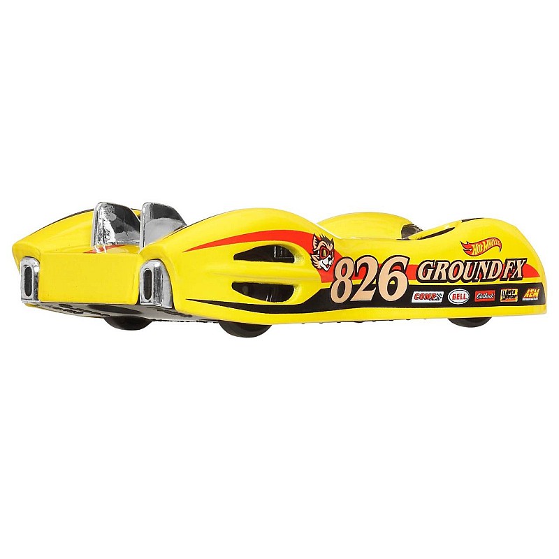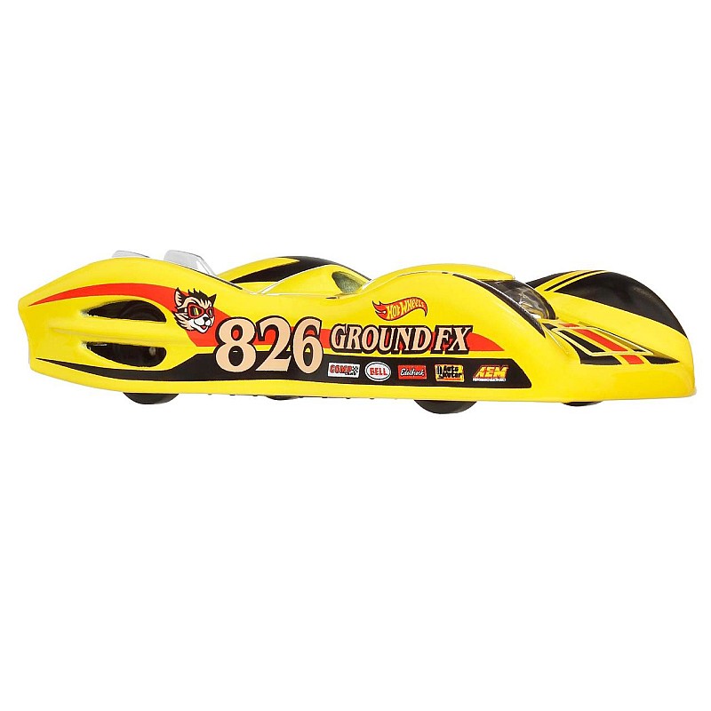 The Hot Wheels Ground FX model, although small, perfectly reproduces a real sports car with yellow body and characteristic graphics.