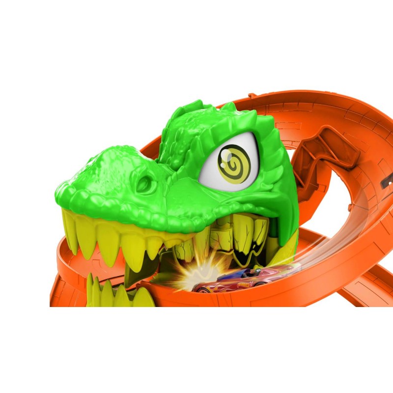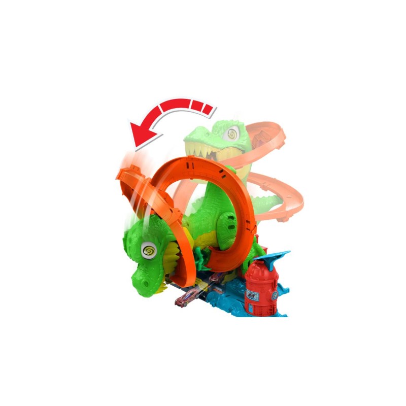 Use epic racing skills to protect the city of Hot Wheels by a dynamic T-Rex who wants to eat all the cars!