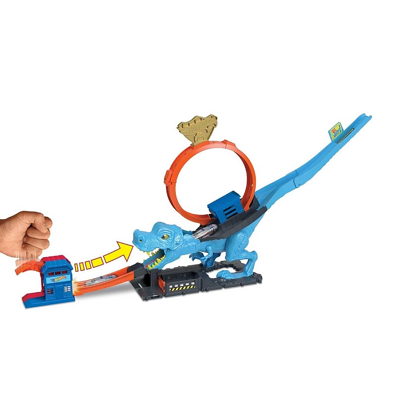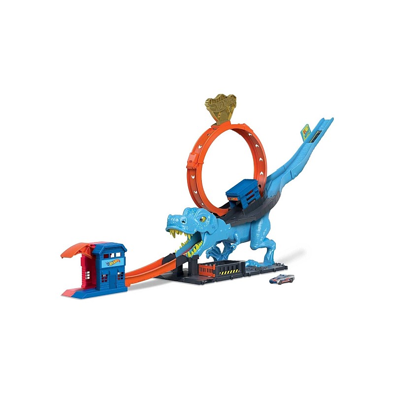 With the Hot Wheels City set-T-Rex Attack, children can launch the car directly included through the open mouth of the dinosaur, in a stopwatch race that will decide the fate of the city.