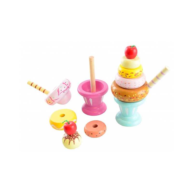 Beautifully crafted wooden toy consisting of 4 colored circles and a cup. This is a perfect gift for children who love ice cream.