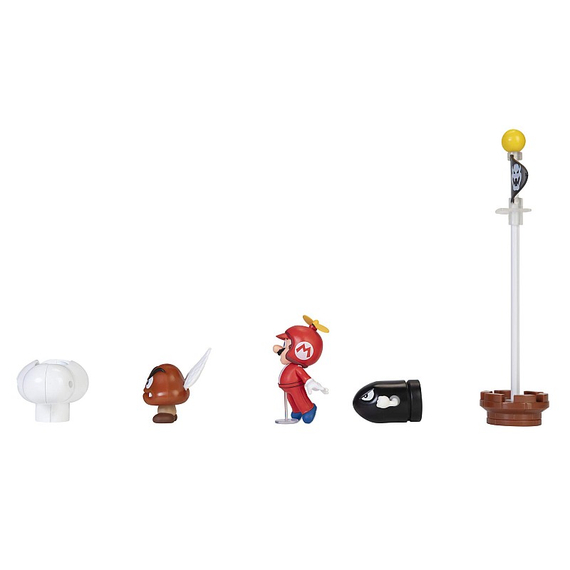 The accessories are modular and can also be used with the play sets. Also included are two Mario propellers, Paragoomba and Bullet Bill.