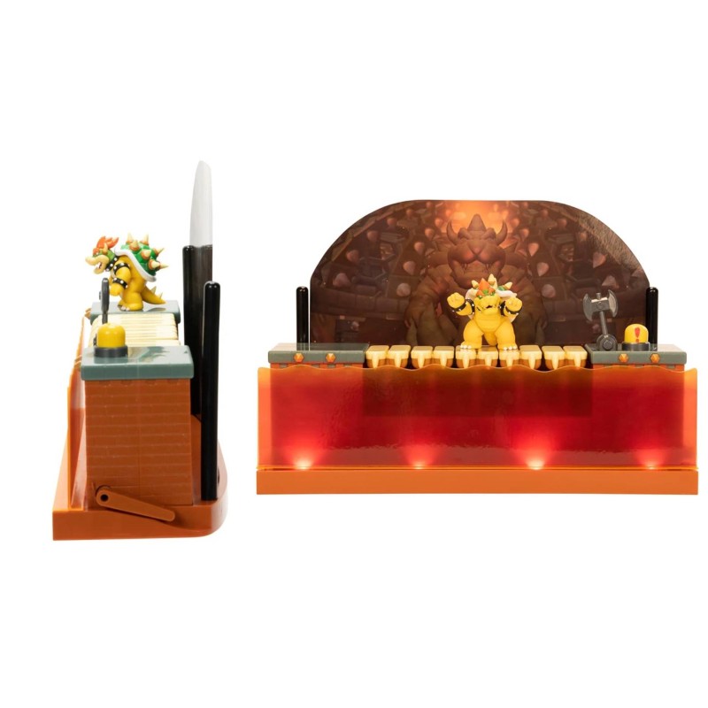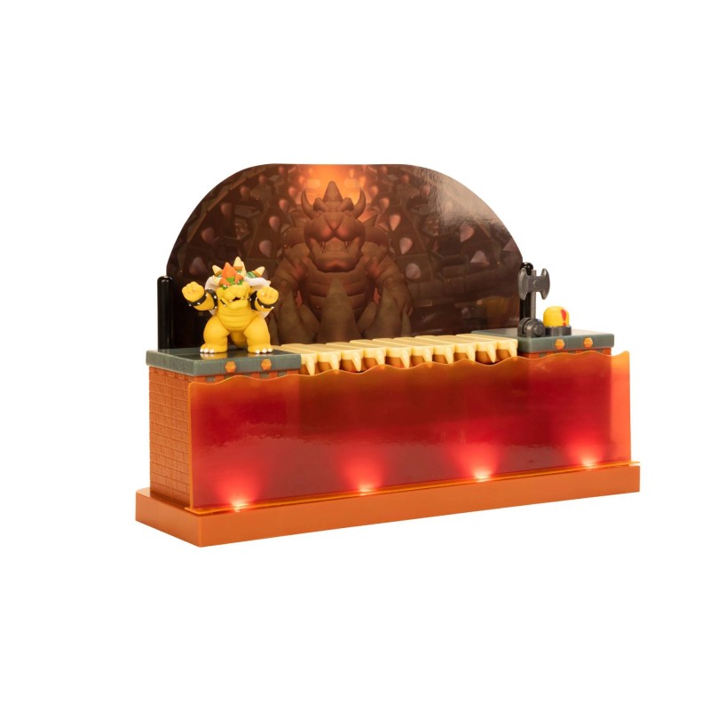 It's time for the ultimate boss fight! Take on Bowser in this iconic level! Loaded with features including glowing lava, button-activated sound effects and music, the stage is ready to battle against the included Bowser figure.