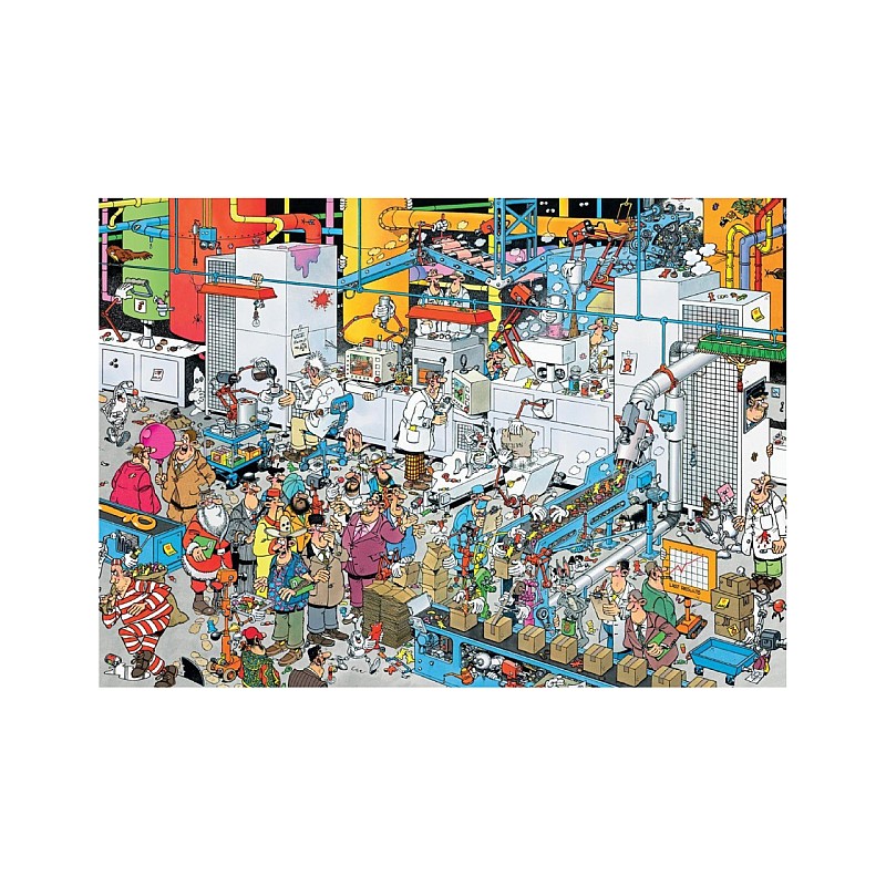 The "candy factory" by Jan Van Haasteren is a fantastic, brightly colored puzzle, consisting of 500 pieces, with many interesting details to discover in the extremely detailed image.