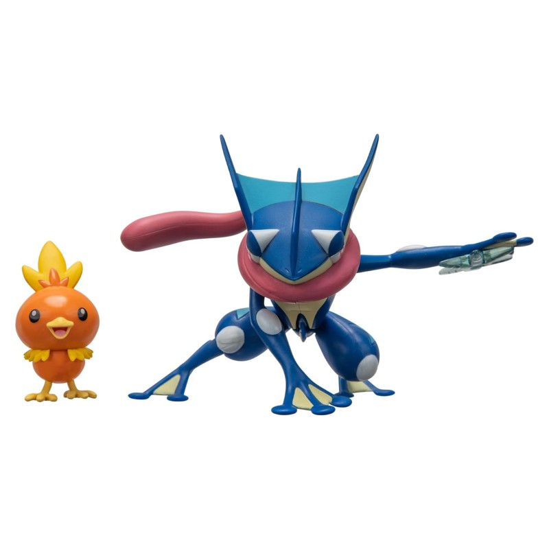 Package includes: a Greninja figure and a Torchic figure.