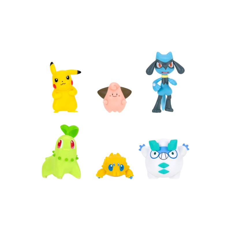 Includes the characters: Pikachu, Cleff, Joltik, Riolu, Galarian Măumaka and Chikorita.