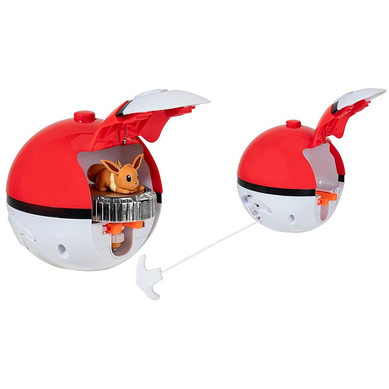 Simply spin your Pokemon in the associated Pokeball by pulling the string and the duel against your friends can begin.
