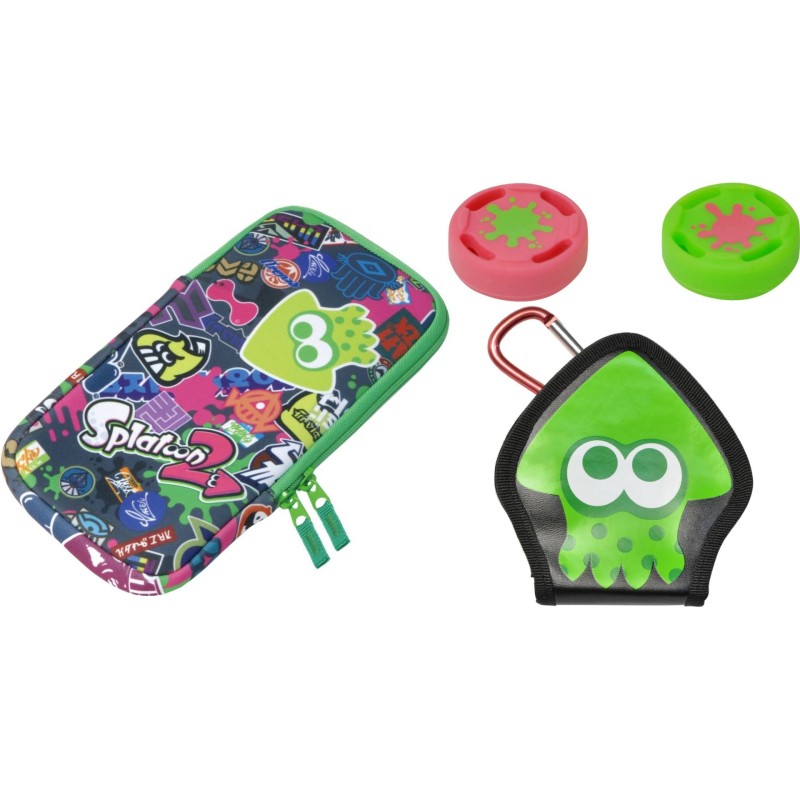 Featuring original Splatoon 2 artwork, this starter set includes a soft pouch, a squid playing card case, and analog stick covers.