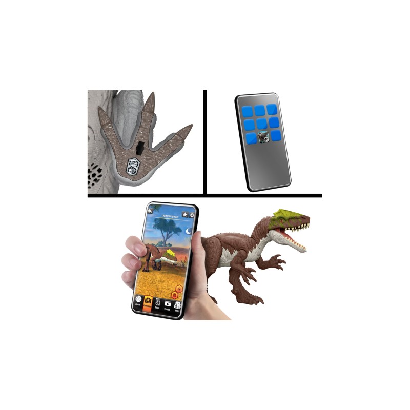 Scan the tracking code on the dinosaur's leg with the free Jurassic World Play app on a compatible device (Android or iOS, not included) to access a digital version of the dinosaur and play its fun game. Colors and patterns may vary.