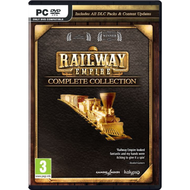 Railway Empire - Complete Collection contains the main Railway Empire game plus all 8 DLCs: Mexico, Great Lakes, Crossing the Andes, Great Britain and Ireland, France, Germany, Northern Europe and Down Under.