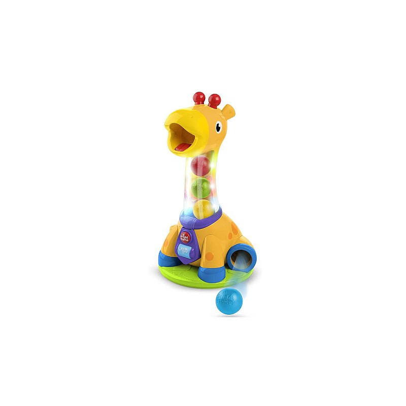 This irresistible giraffe will keep your child engaged in movement and fun. Seated babies can throw balls into the giraffe's mouth for counting, music and lights.