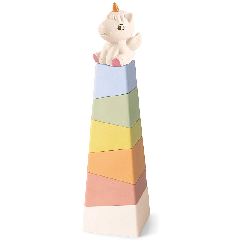 With its charming tip in the form of unicorn and six bioplast bricks, this stacking tower is as educational as it is fun.