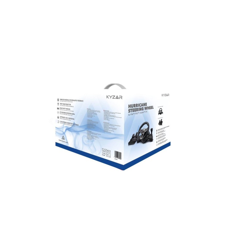 The Kyzar steering wheel makes racing games even more fun, in addition to the high-quality steering wheel and pedals, the steering wheel is equipped with a gear lever and all the buttons you need to play.