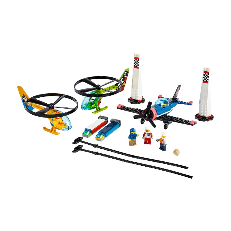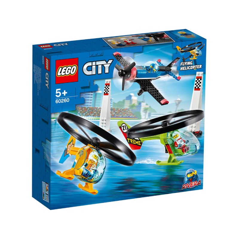 Send kids' imaginations sky high with this LEGO City Air Race (60260) playset, featuring a super aerobatic propeller toy, 2 string helicopters and 2 racing pylons.