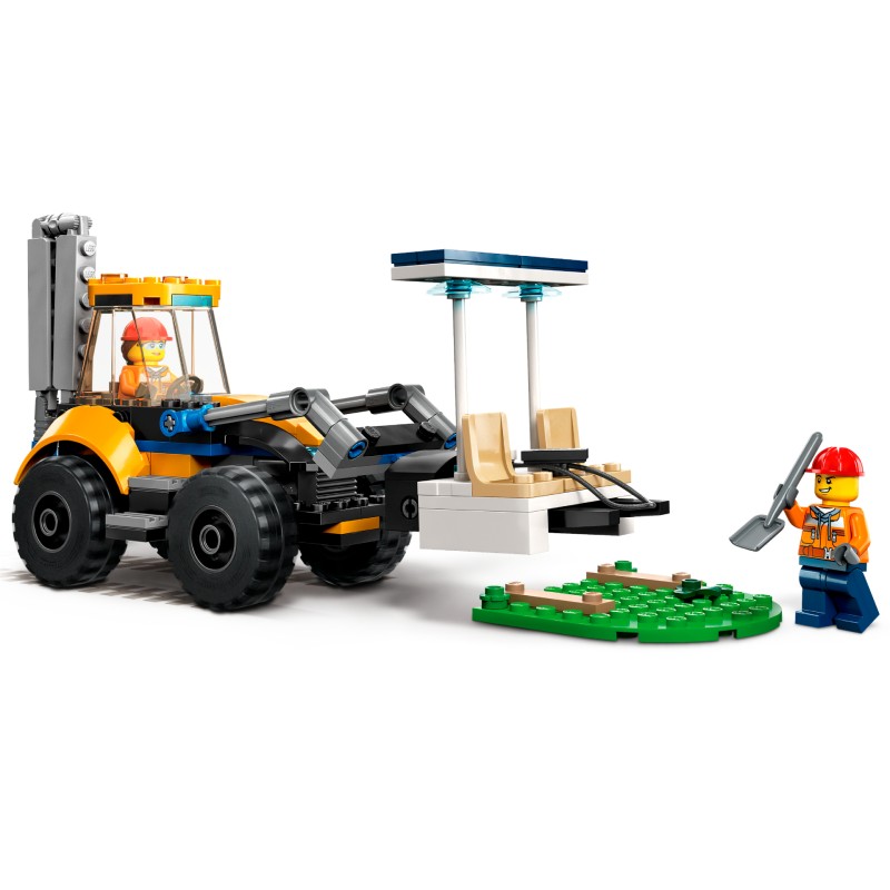 Little builders can jump aboard the customizable Construction Digger toy and help LEGO City workers replace the old park bench.