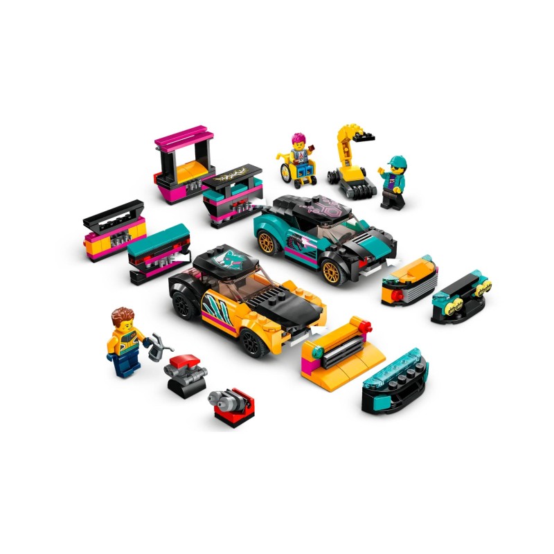 Kids can choose from a range of engines and modular front and rear sections with different headlights, bumpers and spoilers to create their own models. Includes 2 mechanic minifigures and 2 driver minifigures with fun accessories.