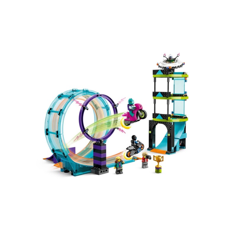 Hours of action-packed fun await with LEGO City Ultimate Stunt Riders Challenge (60361). This set comes with 2 toy stunt bikes and 3 combinable stunt machines, including a 360° loop, a ring of fire and a fun "alien tower" challenge.