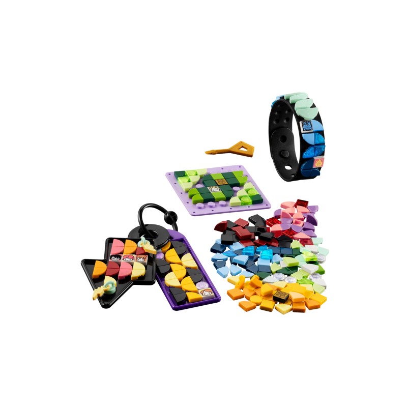 4 LEGO DOTS canvases are included: a double-row bracelet, a sew-on patch, a bag tag, a Harry Potter lightning scar bag tag, a keychain and a key.