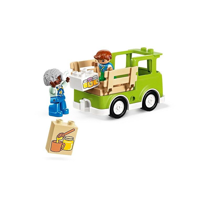 Comes with 2 cute bee figures, a beehive with a honeycomb brick, flower elements and a drivable truck.