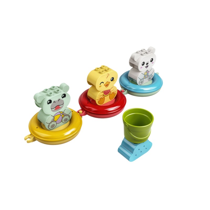 This bath toy includes a hippo, a duck and a polar bear, a bucket, a rain cloud and 3 floating rings that open for quick and easy cleaning.Little ones put 2 bricks together to build each animal, then place them in the floating rings in this fun and engaging bath toy for toddlers.