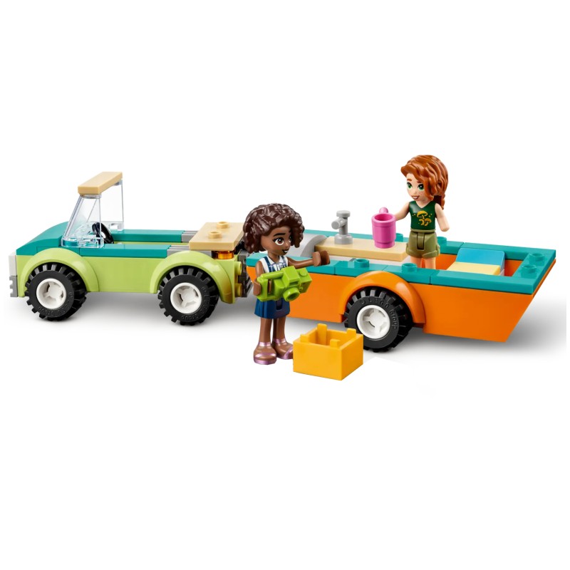 This Lego Friends toy trailer with attachable toy car lets kids play forest camping adventures with Aliya and Autumn mini-dolls.