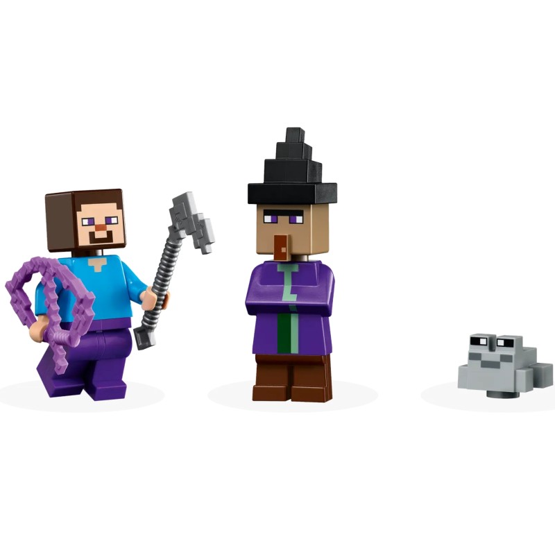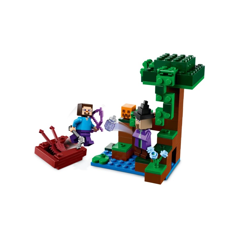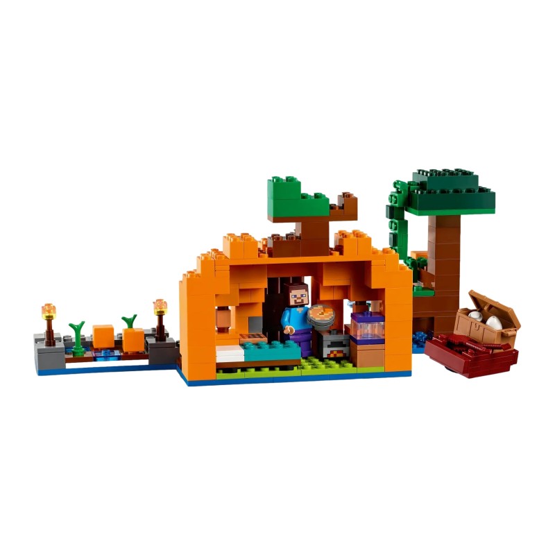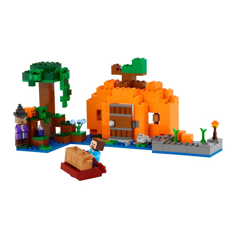 Set in the game's infamous swamp biome, this highly reconfigurable toy features main character Steve on a pumpkin farm built around a pumpkin-shaped house.