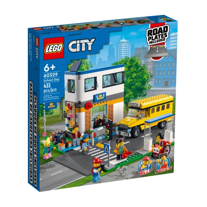 Take the bus for a fun day at school with Billy and Maddy, the TV characters from LEGO City. Watch out for the kid who is racing his BMX on the bike track.