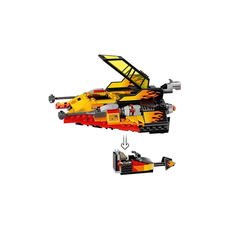 Snowspeeder comes with a personalized and unique design, with flames for added style and attitude. The vehicle has a double cockpit that opens, perfect for two minifigurines, and hides a removable speeder motorcycle.