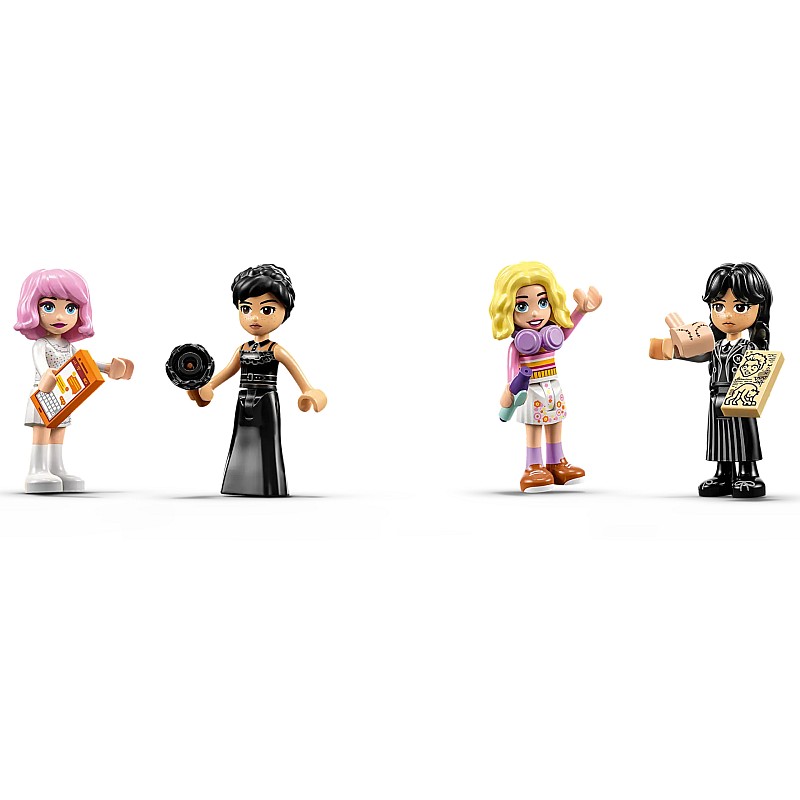 The detailed LEGO Wednesday Addams gift set includes 4 collectible Wednesday and Enid mini-doll figures, the Thing character and a dorm room model.