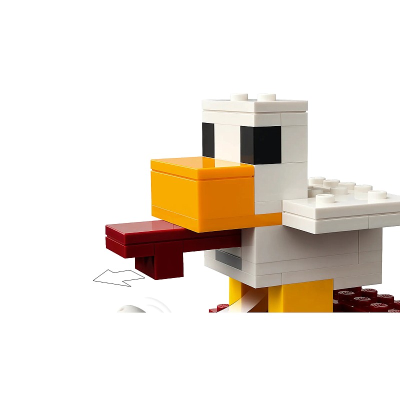 The balloon has space for Piglini and includes a disc launcher. In the village there are market stalls, Steve's fried chicken restaurant, his creative workshop and a fountain, which can be "exploded" by a specially built-in function.