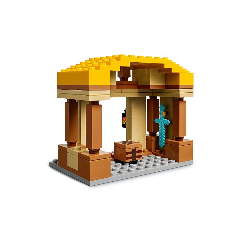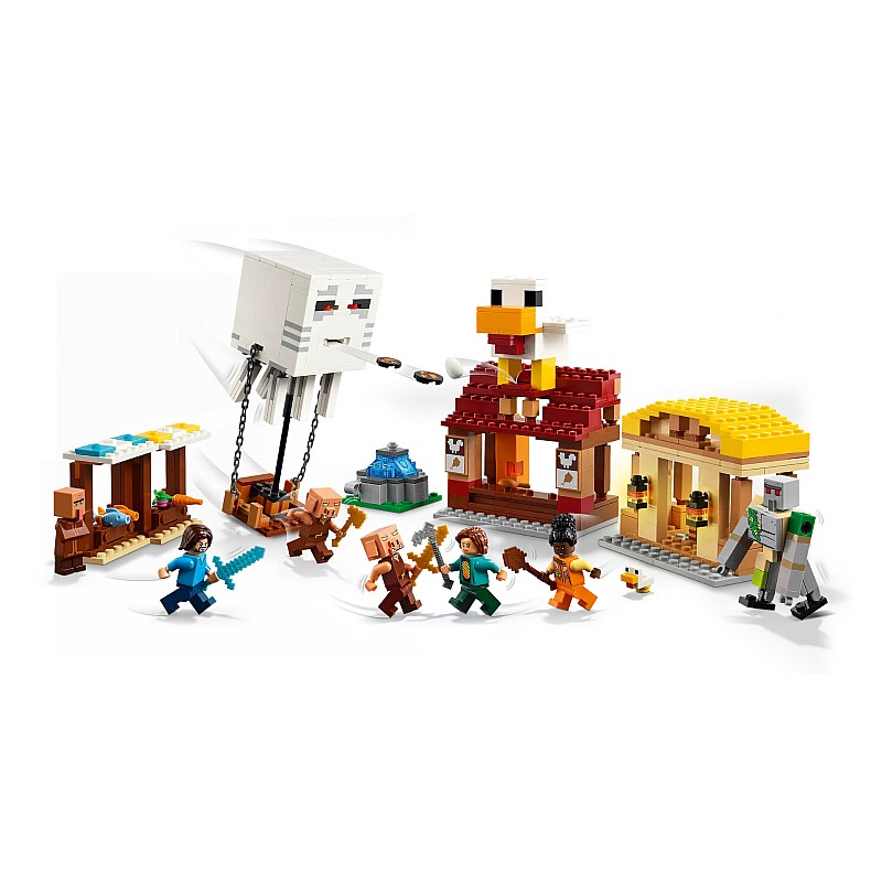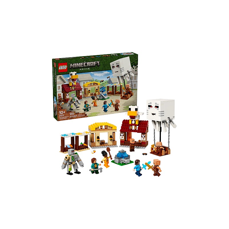 The attack of the village with the Ghast Ball (21273) is a construction set inspired by a scene from the Minecraft movie.