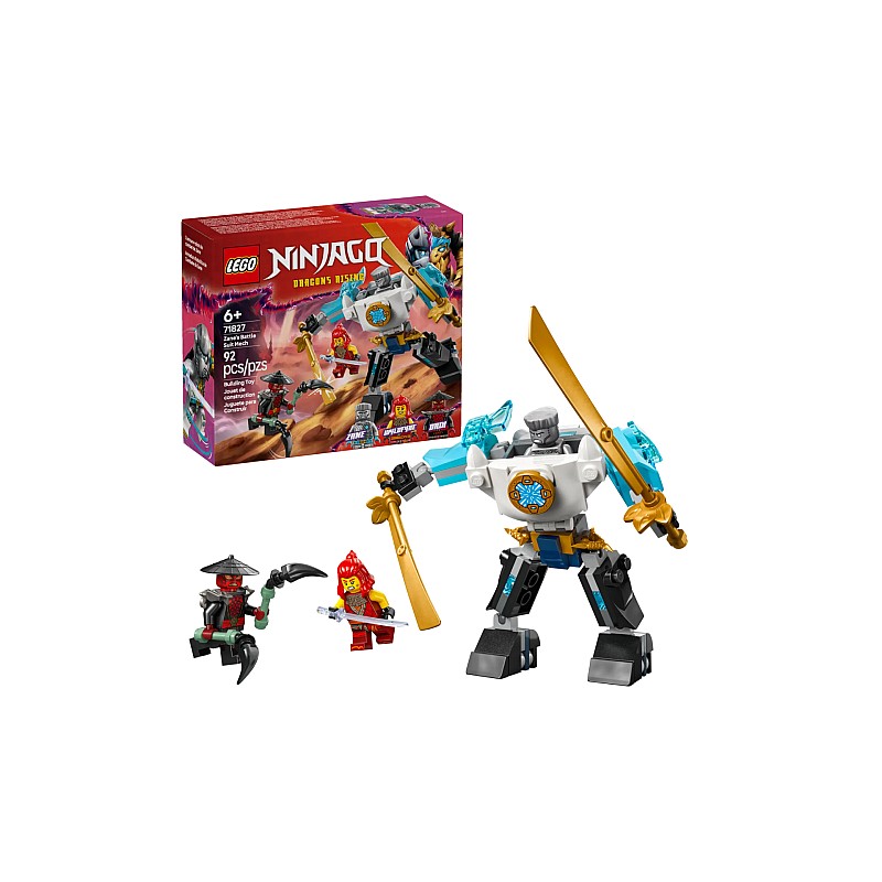 The Ninja Lego Ninjago Zane's Battle Suuit Mech (71827) toy allows children to stage the captivating action of season 3 of the TV Ninjago Dragons Rising.