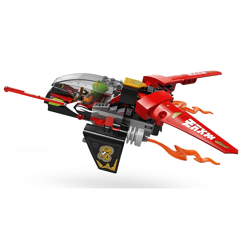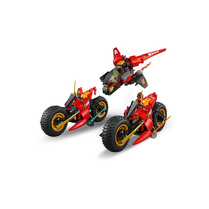 Children can play with an action toy with a Ninja Mare motorcycle before separating it into 3 smaller vehicles: Kai's motorcycle, Wyldfyre's motorcycle and Frak jet jet toy with 2 shooting targets.