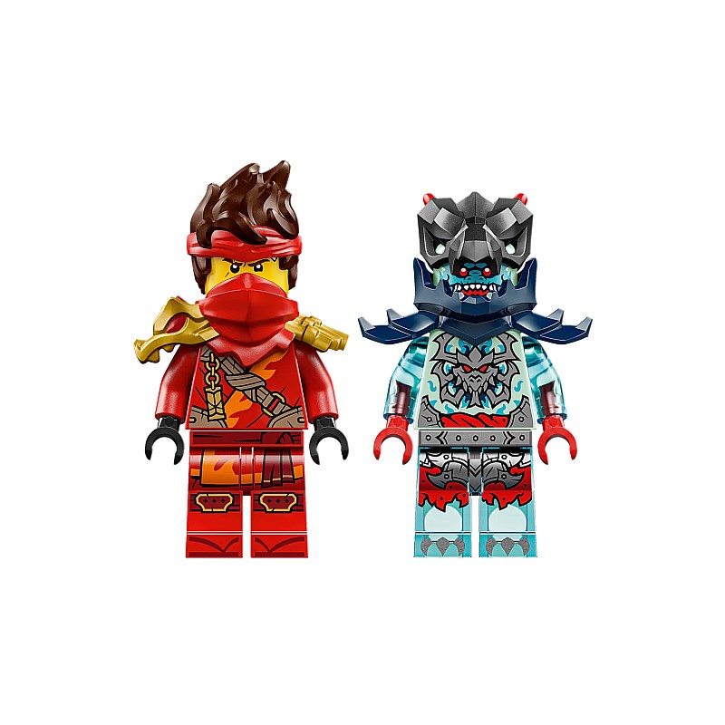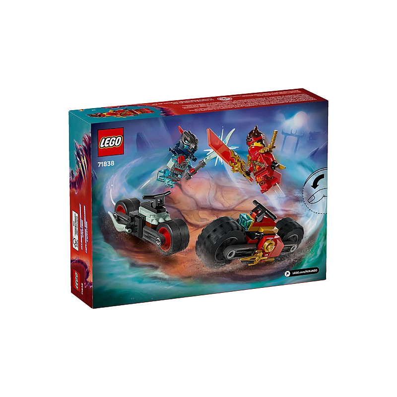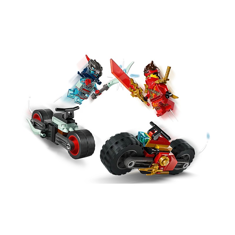 The Ninja vehicle set includes 2 Ninjago minifigurines to drive the motorcycles, KAI armed with a translucent lemon accessory and 2 golden katana sword accessories.