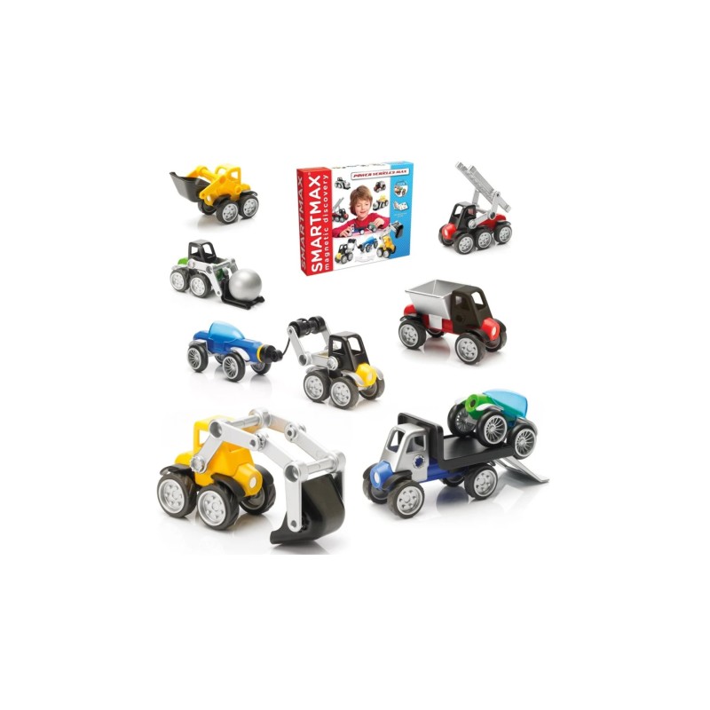 Build a bulldozer, fire truck, forklift, tow truck, pick-up truck or van with this set.