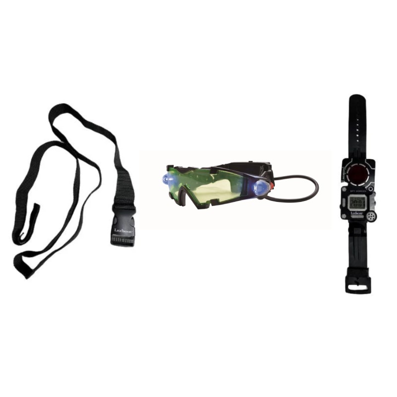 Stylish decoder watches with motion detectors are a must-have for any secret agent. Goggles require 4x AAA/LR03 batteries (not included).