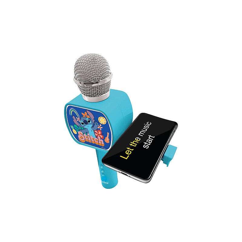 The microphone is equipped with an extensible phone holder, suitable for reading the lyrics on the mobile phone (not included).