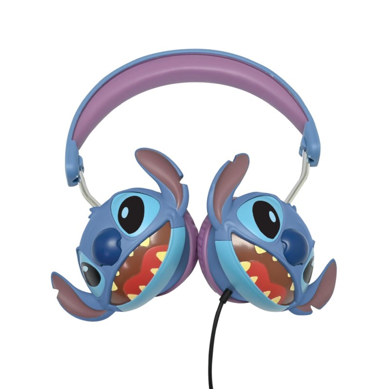 The headphones are decorated with colorful images of the character Stitch, offering a cheerful and engaging look, ideal for children.