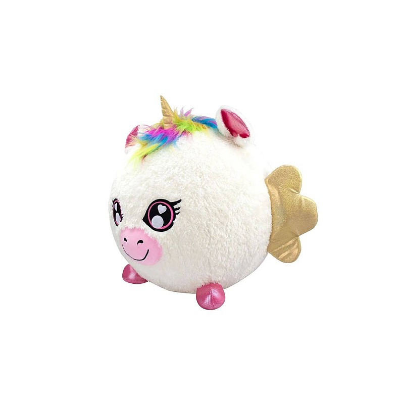 This white Biggies Unicorn Biggies is covered in a soft material that is great to hug.