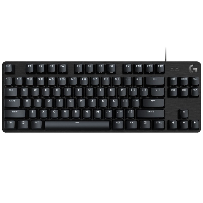 G413 TKL SE includes mechanical touch switches; PBT keycaps, anti-ghosting performance with roll resistance on six keys; brushed aluminum top case with white LED lighting; 12 function button media controls and reliable USB cable technology.