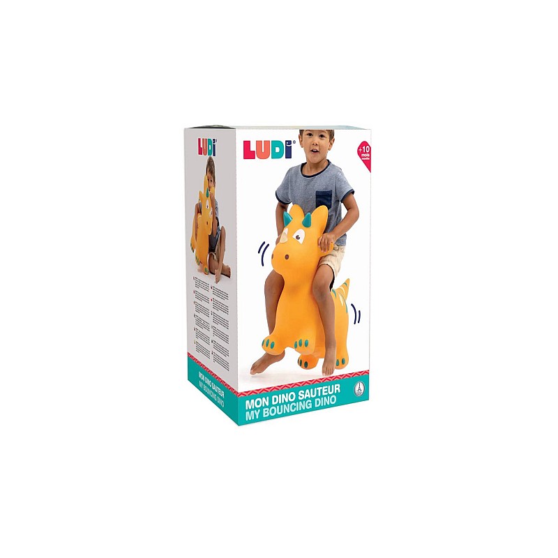A dynamic and playful unicorn, the jumping dinosaur can be used as a bouncy ball with two ears as handles.