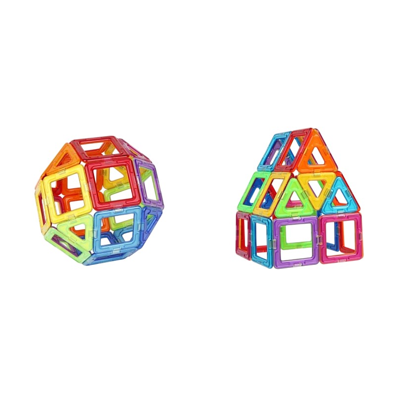 This set contains exactly 18 squares and 8 triangles, the ideal number of pieces to create the famous magnetic sphere.