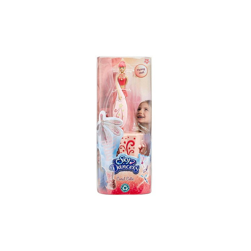 Pull the string on the decorated launch pad and watch Coral Cutie fly into the air again and again.