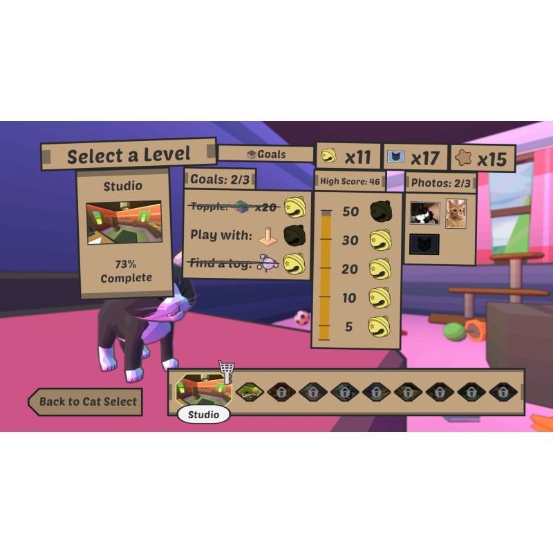 Complete objectives, explore procedurally generated levels, or relax in sandbox mode to unlock tons of cat friends and special abilities!