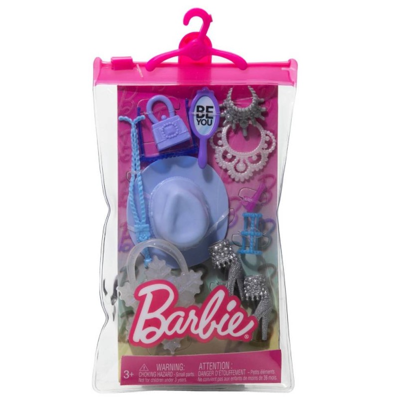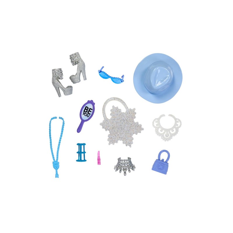 In this package you will find 3 necklaces, a hat, a pair of shoes, 2 bags and a mirror.