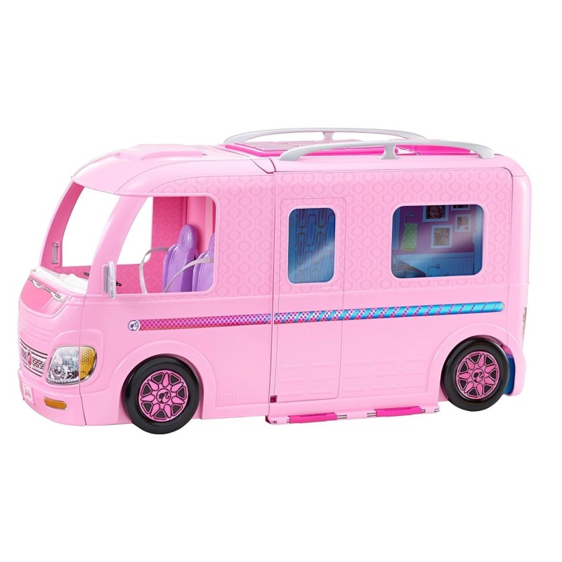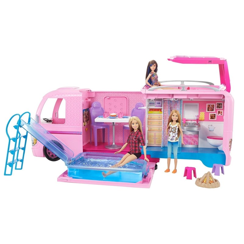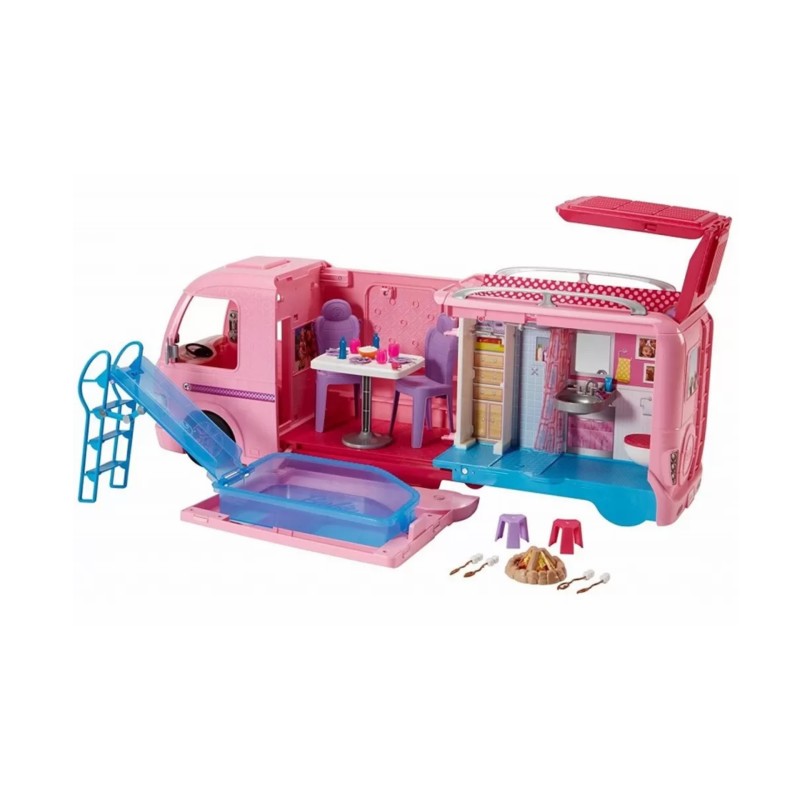 This amazing Barbie Dream Camper converts from a camping trailer to a camping playset with sleeping space for Barbie doll and all her sisters!