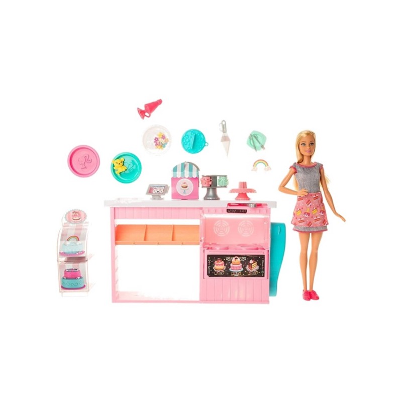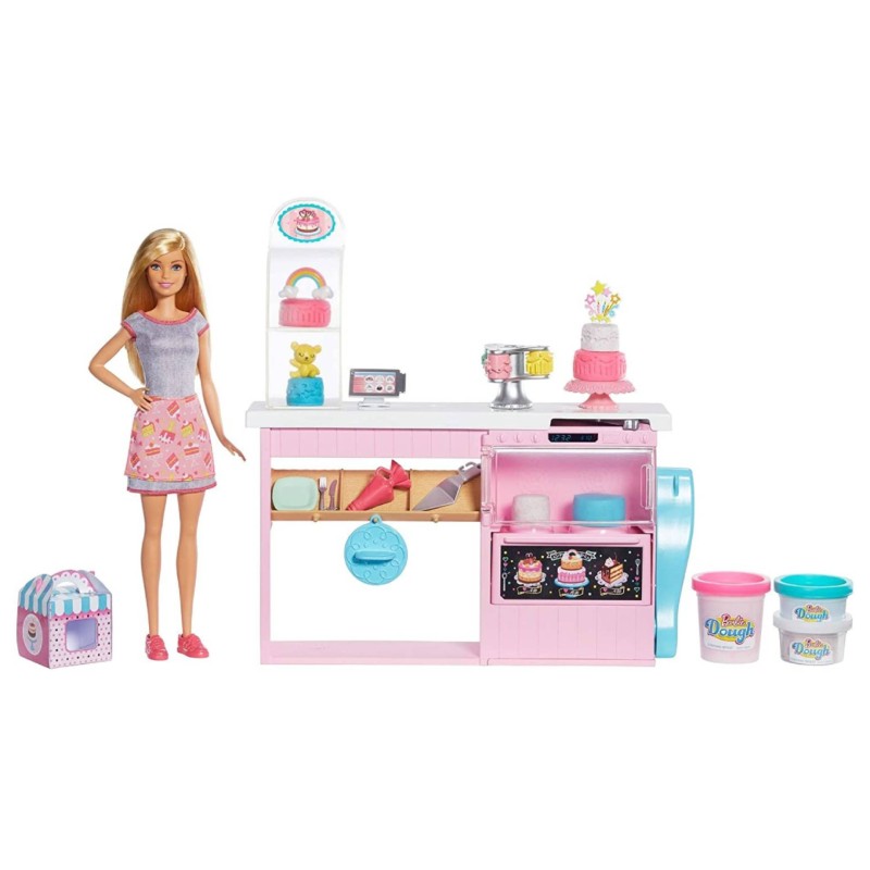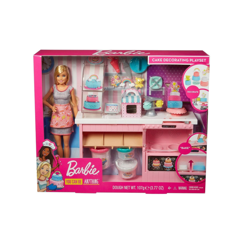 Barbie doll and her cake decorating kit are ready to help kids have the perfect cake and decorate it!