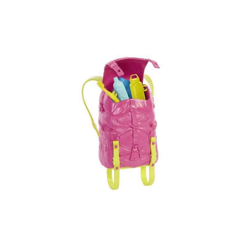 Are you ready to start exploring? Attach Barbie doll's sleeping bag and load the backpack with hiking essentials like a lantern, map, binoculars and more!